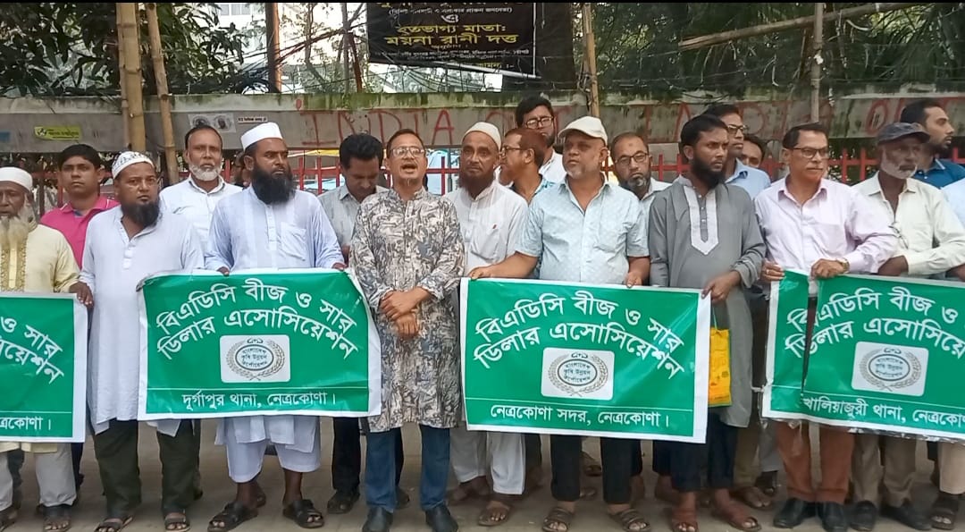 আজ সোমবার বিকেলে বিএডিসি সার ও বিজ ডিলার অ্যাসোসিয়েশন নেত্রকোনা জেলার আঞ্চলিক সভাপতি মোঃ আতাউল রহমানের সভাপতিত্বে বিভিন্ন দাবী দাওয়া নিয়ে সারা দেশের নেতৃবৃন্দের উপস্থিতিতে এ মানববন্ধন অনুষ্ঠিত হয়।