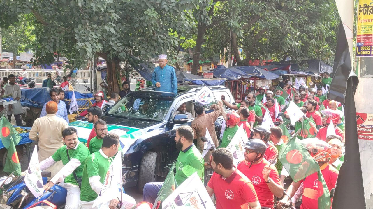 সংসদীয় আসন ঢাকা-৮ জামায়াতের প্রার্থী হেলাল উদ্দিনের মোটরসাইকেল শোভাযাত্রা